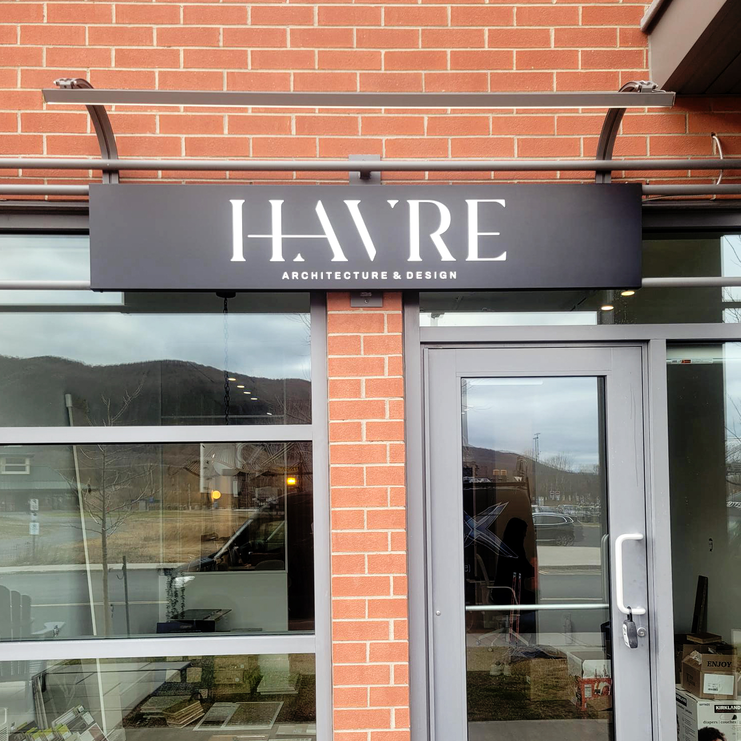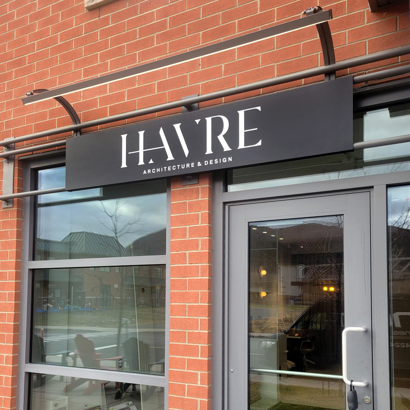 Havre Architecture & Design opted for a simple, elegant aluminum sign.